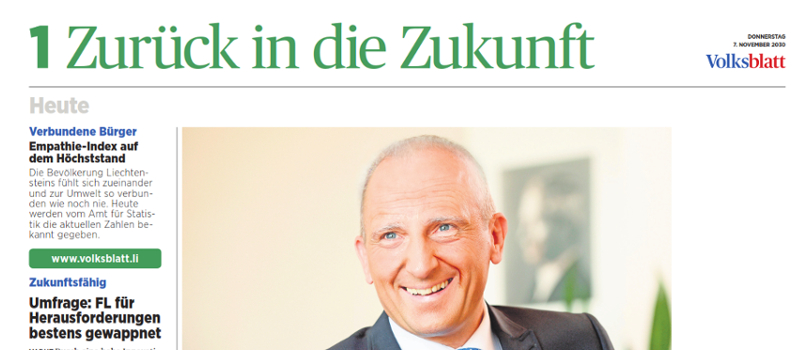 Passend zur Euphorie rund um «Zurück in die Zukunft» und Marty McFlys Ankunft am 21. Oktober 2015 präsentierte die Zukunftswerkstatt erstmals die Beilage «Zurück in die Zukunft» im Volksblatt vom 5. November 2015. Experten und Expertinnen beschreiben aus dem Jahr 2030, wo wir zu diesem Zeitpunkt stehen, welche Veränderungen stattgefunden haben, und welche konkreten Schritte gemacht wurden. Als Download findest du die Ausgabe als PDF. Ebenalls können Exemplare bei uns im Coworking Spce in Vaduz abgeholt werden. Viel Spass beim Lesen.